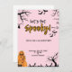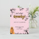 ¡Prepárate para una noche de sustos y diversión! Esta invitación adorable pero espeluznante presenta un fondo rosa pastel, una pila de calabazas sonrientes, murciélagos voladores y la silueta de un árbol embrujado creepy-cute. Perfecto para una fiesta de Halloween divertida y no demasiado aterradora, ya sea para adultos o niños. Personalice fácilmente los detalles de fecha, hora y ubicación para enviarlos a su fiesta de octubre.