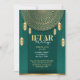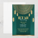 Una invitación a la cena de Iftar, en color verde y dorado. La tarjeta es fácil de personalizar con su texto, fuente, color de fuente, opciones de forma de papel y tipos de papel.