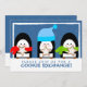 Tres pequeños pingüinos sostienen sus deliciosas galletas en esta dulce invitación de fiesta de galletas.