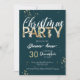 La invitación a la fiesta de invierno de los Navidades de oro es parte de la colección de Fiestas de Navidades. Este producto presenta árbol de Navidad verde, chispas doradas. Hecho principalmente en colores azul y dorado con fuentes de escritura a mano. Explore más productos que coincidan en nuestra tienda.