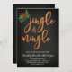 Ayudemos a celebrar la temporada con esta invitación a una fiesta de Navidades que se mezclan con bayas de color agua con una mezcla de elegantes fuentes de Relieve metalizado de imitación dorada.