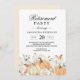 Celebre toda una vida de logros con esta elegante invitación para una fiesta de jubilación con tema de otoño. Con calabazas de acuarela de moda, flores de tonos neutros y tipografía serif clásica, esta invitación es perfecta para celebraciones de otoño con un encanto rústico.