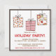 Cada línea puede ser personalizada para satisfacer sus necesidades con esta divertida invitación de tres regalos alegremente decorados colgando como adornos. También disponible: