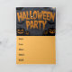 Calabazas de fiesta adornan una invitación de la fiesta de Halloween.