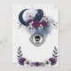 Prepárense para una noche sorprendentemente elegante con esta gótica invitación a la fiesta de Halloween. Con un cráneo detallado coronado con flores oscuras moradas, texturas acuarelas y una mística luna creciente, este diseño es perfecto para reuniones de moda espeluznante, bodas góticos o fiestas nocturnos de Halloween. El equilibrio de flores oscuras y dramáticas y los tonos suaves de las acuarelas hacen que esta invitación sea a la vez sobria y elegante. Personalice sus detalles para impresionar a sus invitados.