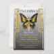 Celebra como si fuera 1922 con esta elegante invitación a la fiesta de la época del Art Déco de los años 20 con una ilustración vintage de una hermosa chica flapper, agitando sus alas de mariposa. Ideal para un tema de fiesta de speakeasy, El Gran Gatsby o Charleston. Perfecto para cumpleaños, despedida de soltera, jubilación o cóctel.