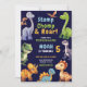 Una invitación al cumpleaños de los dinosaurios es una invitación temática al fiesta que incluye divertidos gráficos de dinosaurios, colores llamativos y textos divertidos como "¡Estómate, Chomp y Roar!" Los diseños populares incluyen dinosaurios personalizados, fondos de inspiración fósil o paisajes de la jungla. Perfecto para los niños amantes de los dinosaurios, ¡marcan la pauta para una celebración prehistórica con temática de aventura!