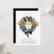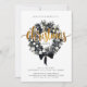 Invite a los huéspedes a su celebración de vacaciones con estilo con esta moderna invitación a la fiesta de Navidades. Con una corona de moda en blanco y negro adornada con perlas, flores y adornos, está coronada con un guión dorado festivo y un arco negro clásico. Personalice los detalles para marcar el tono de una elegante noche de alegría.