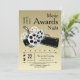 Esta invitación a los premios Movie Awards es ideal para un evento o arte y glamour. Esta invitación moderna tiene un toque de época. Presenta un ilustracion con un carrete de película, película y estrellas en un fondo de gradiente suave.