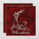 Un feliz reno macho sobre un fondo rojo con borde intrincado.