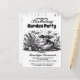 ¡Sumérgete en la diversión con nuestra brillante Invitación a la fiesta de jardín de negro y blanco! Únete a nosotros para pasar un buen rato mientras celebramos al estilo floral. Prepárate para: Rosas brillantes, Verdor emocionante, 🎂 Deliciosos regalos de cumpleaños, 🧜♀️ Aventuras mágicas al aire libre. ¡Ven con tu mejor ropa de granjero y hagamos un día divertido juntos! ¡No te pierdas esta celebración! Una ilustración en negro y blanco de una mujer que cuida el jardín, rodeada de una variedad de flores y plantas.