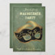 una invitación de fiesta de máscaras verde de moda, personalizable fácil, haga clic en "personalizar" para opciones adicionales de añadir , cambiar, borrar, cambiar de tamaño, cambiar de color, reordenar, enviar texto e imágenes