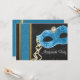 Esta invitación a la fiesta de máscaras cuenta con una máscara de máscara azul turquesa, un broche dorado con perla, un borde de damasco con bordes diseñados con filigrana dorada. (todos son diseños gráficos) Fácilmente personalizable. Muchos colores - azul turquesa :: SOBRES INCLUIDOS::