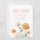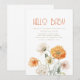 Si te gusta el estilo boho simple, esta invitación es correcta para ti. La invitación presenta un diseño elegante, con un fondo blanco y suave. En el centro, los detalles del fiesta están bellamente redactados en un texto naranja que exuera un aire de sofisticación. En la parte inferior, los naranjas suaves y las flores silvestres crema se sientan suavemente. Invite a los huéspedes a su fiesta de ducha de bebé con estilo. El color de fondo y el texto son editables.