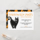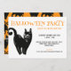Invitación de la fiesta Black Cat Halloween mostrando un patrón de gato negro en un fondo naranja en la parte posterior de la tarjeta. Personalizar con tus detalles, cambia el color del texto o sale como se muestra aquí para crear tu propia invitación divertida. ¡Difunde la palabra sobre tu espantoso bash de halloween! Por favor, busque más artículos en la colección Black Cat Halloween.
