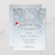 Una hermosa invitación con una gorra de santa, un adorno y algunos copos de nieve.