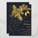 Invitación a la fiesta de Navidad de azul profundo y dorado con lámina de oro real