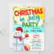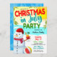 ¡Divertida y adorable invitación de Navidad en julio con un muñeco de nieve en la playa!