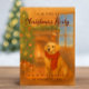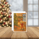 Invitación cálida para las fiestas con chimenea, árbol y perro con bufanda, perfecta para reuniones festivas. Encanto hecho en Zazzle.