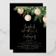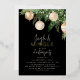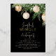 Diseñada para traer el espíritu festivo a cualquier hogar, la Invitación para Fiesta de Navidad de Jingle & Mingle es la adición perfecta para esta alegre temporada de celebraciones. Con letras de pan de oro sobre un fondo negro, exquisitos adornos de acuarela en tonos de crema y dorado, contrastados con un exuberante pino de hoja perenne adornado con luces de hadas, esta invitación visualmente impresionante seguramente asombrará e impresionará incluso a los invitados más exigentes.