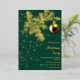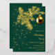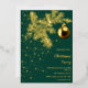 Invitación a la fiesta de Navidad verde esmeralda y dorado con lámina de oro real