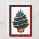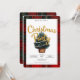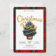 Esta tarjeta es para una invitación del partido de Navidades. Presenta un diseño festivo con un borde dorado en Navidades tradicionales de colores rojo, verde y negro. En el centro, hay un ilustracion de un árbol de Navidad decorado con suaves y brillantes luces de cuerda. El texto dice **"Únete a nosotros para un Fiesta de Navidades"** en negrita. Debajo del árbol, los detalles del evento están claramente listados, incluyendo la fecha, y la ubicación. La información del RSVP se encuentra en la parte inferior, y se solicita a los clientes que respondan antes de una fecha específica. El conjunto es alegre, acogedor y refleja el espíritu de la temporada de vacaciones.