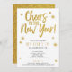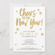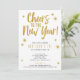 'Brindis por el Año Nuevo' invitación para la fiesta de Nochevieja con brillo dorado y estrellas en un fondo blanco. ¡Personaliza el color de fondo si lo deseas y agrega todos tus detalles para que la gente sepa sobre tu evento!