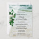 Una elegante invitación al aniversario de la playa con flores de orquídeas blancas en un velo boda con vistas a una playa con encaje y perlas. El encaje de la parte posterior se puede quitar si lo desea.