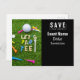 Invitación a la fiesta de Par tee de golf con pelota de golf y tees coloridos sobre hierba verde.