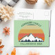 Invitación postal de la reunión familiar de personalizados de Guay para una reunión de otoño con primos, tías, tíos y abuelos. Invite a toda la tripulación con su apellido y año en verde alrededor de la hermosa imagen de puesta de sol de otoño sobre las montañas y los árboles. Gran diseño de viaje de camping grupal personalizado.