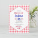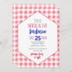¡Empieza tu fiesta con nuestra invitación a la fiesta de picnic de barbacoa! Ya sea que esté celebrando el Día de la Memoria, el Día de la Independencia, un retiro o un cumpleaños, esta invitación es perfecta para todas sus reuniones de picnic al aire libre. Con un bonito patrón de manteles de picnic rojo y blanco a cuadros y un marco geométrico elegante, sus detalles fiestas se muestran en la moderna tipografía moderna. Que las fiestas de barbacoa comiencen con esta divertida y elegante invitación que marcará el tono de un memorable fiesta al aire libre.