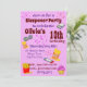 Una invitación a una fiesta de pijamas de cumpleaños, personaliza los detalles siguiendo las instrucciones para cambiar los detalles personales.