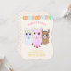 Tarjeta de invitación a la fiesta de pijamas de llama. Globos multicolores y tres llamas lindas en fondo beige claro. Patrón de estrellas rosadas y globos en el dorso. El texto está listo para ser personalizado.