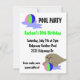 Una divertida invitación al cumpleaños de los fiestas de la piscina con coloridas pelotas de playa con rayas rosas, verdes y azules. Un lindo personalizado de león marino listo para salpicar. Personalizar con toda la información de su propio fiesta según lo desee. Ideal para fiestas de cumpleaños de verano.