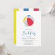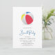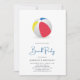 Invitación a una fiesta de playa con una colorida pelota de playa perfecta para fiestas de verano.