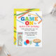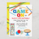 Nuestra invitación original para fiesta de cumpleaños con pizza Game On Arcade, la más vendida, es la invitación perfecta para cualquier fiesta temática de juegos con un tema de arcade, laser tag o pizza. Este diseño presenta letras coloridas con divertidos gráficos de juegos de arcade, globos y pizza.