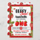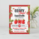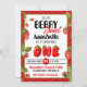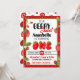 Cute tema de fresa primera invitación de fiesta de cumpleaños, edite el texto usted mismo al pedir