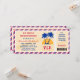 Invitación divertida y atractiva a la fiesta de retiro con un tema de viaje. La invitación tiene forma de billete de avión tradicional y tiene un dibujo con palmeras y el sol. El diseño es ideal para simbolizar los días de relajación que se avecinan. La redacción sigue el tema de los viajes. Agregue sus propios detalles de fiesta.