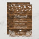 Bonito, diseño rústico con cuerdas de luces brillantes sobre la madera y un borde inferior de encaje.