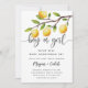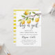 Tarjeta de invitación a la fiesta de revelación de género con tema de limón adorable con ilustración de un limonero con los frutos cítricos.