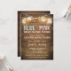 (H) ¡Una invitación divertida y rústica para tu fiesta de revelación de género! Fondo rústico de madera con luces.