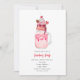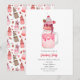Una invitación a la fiesta de San Valentín con una ilustración de un batido extremo coronado con fresa cubierta de chocolate, dulces, sprinkles y cereza.