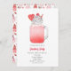 Una invitación a una fiesta de San Valentín con una ilustración de un batido extremo decorado con una galleta en forma de corazón, sprinkles y cereza.