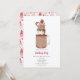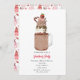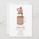 Una invitación a la fiesta de San Valentín con una ilustración de un batido de chocolate extremo decorado con sprinkles y fresa.