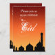 ilustracion de silueta de mezquita con una escena del cielo rojo.