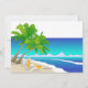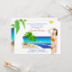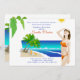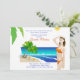 Una invitación alegre y colorida que es perfecta para su fin de semana de tocador de la playa. Estas encantadoras invitaciones cuentan con una playa tropical y una mujer, vestida con bikini, mirando al sol. La parte trasera es sólo un bonito como el frente.