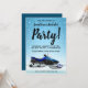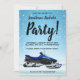 Comienza la fiesta de soltero con esta divertida invitación para la fiesta de soltero de invierno en moto de nieve azul. Cuenta con un fondo nevado con un trineo de moto de nieve azul. Cualquier texto en esta invitación es fácil de personalizar con los detalles de tu fiesta. La parte posterior es de un color azul sólido, pero puedes agregar tus propios detalles de la fiesta o incluso una foto con la sencilla herramienta de diseño.