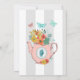 Estiloso señoras fiesta de té invitación personalizado hecho en un patrón de rayas verticales de color blanco y gris claro, con bonitos gráficas de una olla de té con mariposas y flores. El texto está listo para personalizar, para su evento de fiesta de té.