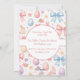 Invite a sus invitados a una encantadora celebración primaveral con esta invitación a la fiesta de té de Pascua estilo coqueta. Con conejitos de acuarela, lazos rosados suaves y delicados acentos florales, esta tarjeta de doble cara es totalmente personalizable. Perfecta para una fiesta de té en el jardín, un desayuno de chicas o una reunión festiva caprichosa. Elegante, trendy y de alta calidad.