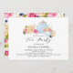 Invitación elegante y femenina para una fiesta de té. Esta invitación para una fiesta de té floral presenta ilustraciones en acuarela de tetera, taza de té, rosas marfil, rosas rosadas y arándanos con un fondo de patrón floral. Perfecta para fiestas de té, eventos de jardín y primavera.